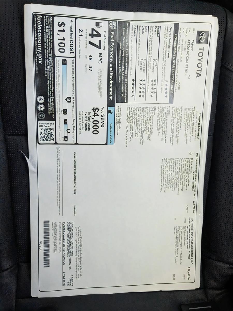 AutoNation Toyota Weston has a wide selection of exceptional pre-owned vehicles to choose from, including this 2025 Toyota Camry. This Toyota includes: UNDERGROUND BLACK, LEATHER/DINAMICA MICROFIBER SEAT TRIM Vinyl Seats Cloth Seats Leather Seats Premium Synthetic Seats *Note - For third party subscriptions or services, please contact the dealer for more information.* This exceptional 2025 Camry XLE has passed the Toyota stringent standards and has been hand-selected to become a Certified Pre-Owned vehicle. The quality of this vehicle will undoubtedly ensure a worry-free buying experience. The Toyota Camry XLE speaks volumes about it's driver, uncompromising individuality, passion for driving, and standards far above the ordinary. It's exceptional fuel-efficiency is a clear sign that not all vehicles are created with the same standards. Intricately stitched leather and ergonomic design seats are among the details in which test drivers say that Toyota Camry XLE is in a league of its own